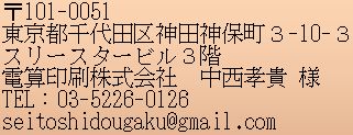 | 以下の項目をE-mailにてご連絡ください。 | |